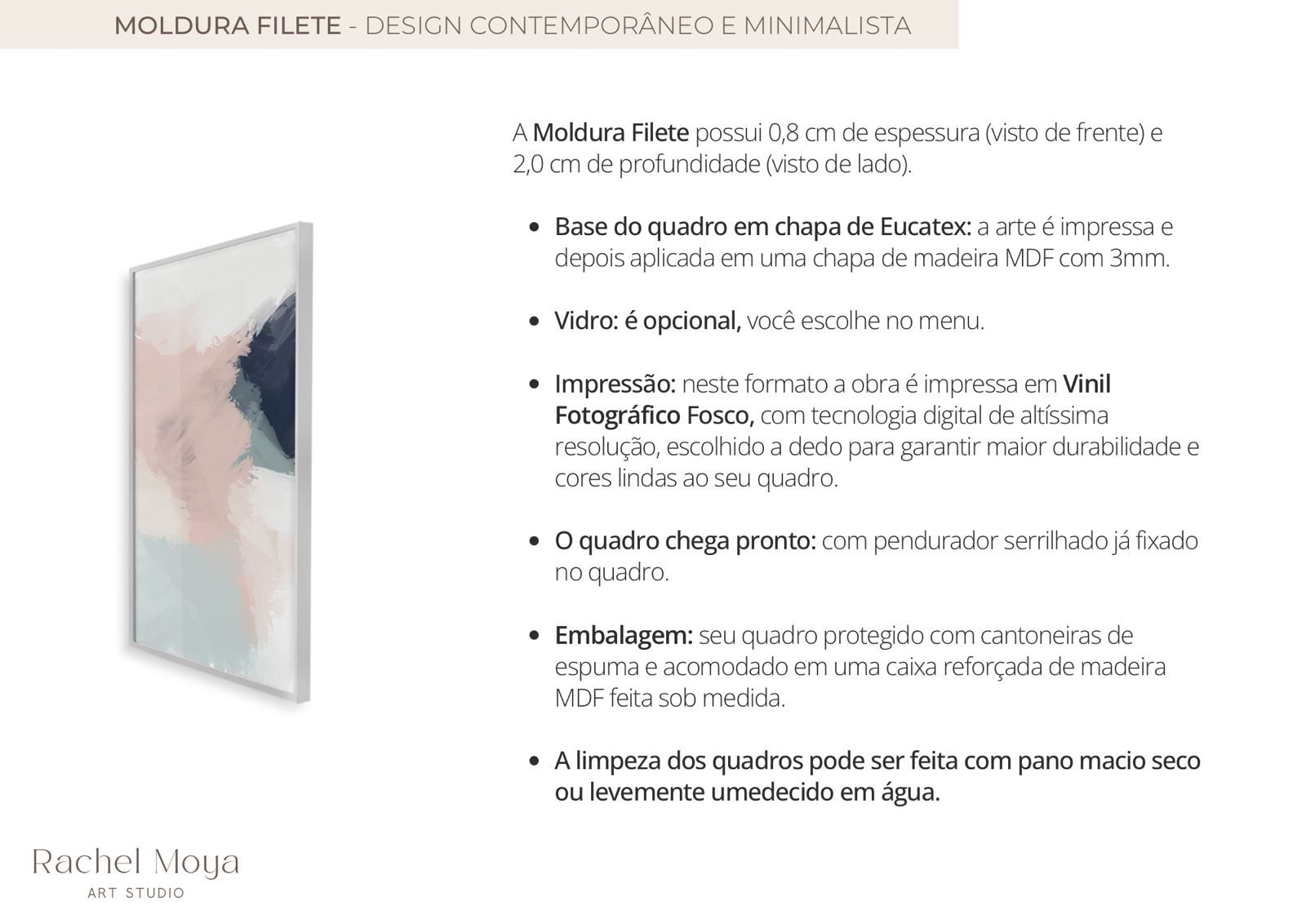 Conheça todos os detalhes dos materiais e tipos de moldura que produzimos.